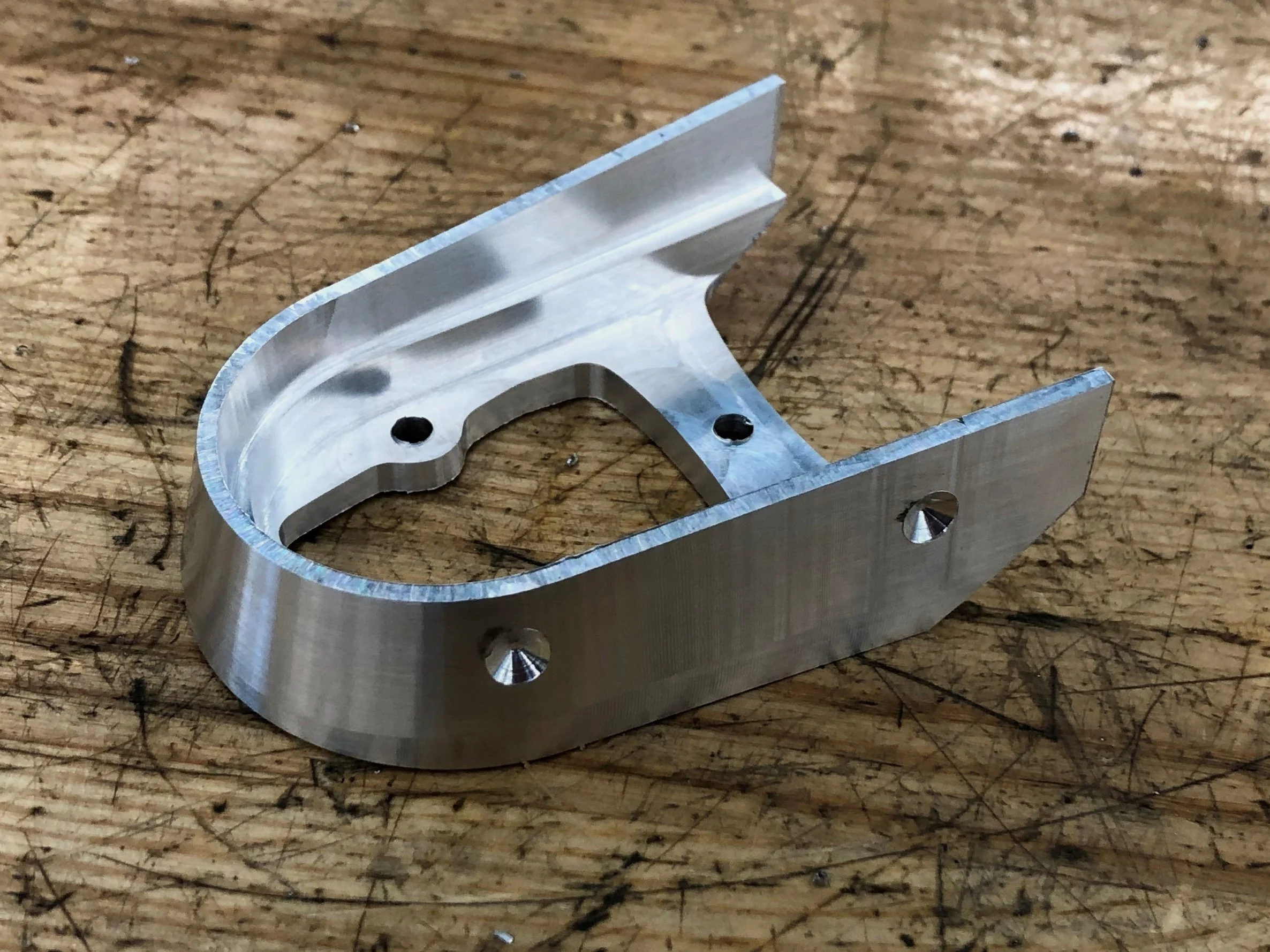 Fixturing for the second machining operation was non trivial due to the curved, drafted surfaces from the first operation. The initial soft jaw design relied purely on friction and did not produce a sufficient amount of retention, even with a sandblasted surface finish to increase friction, resulting in a thrown part during a face milling operation.